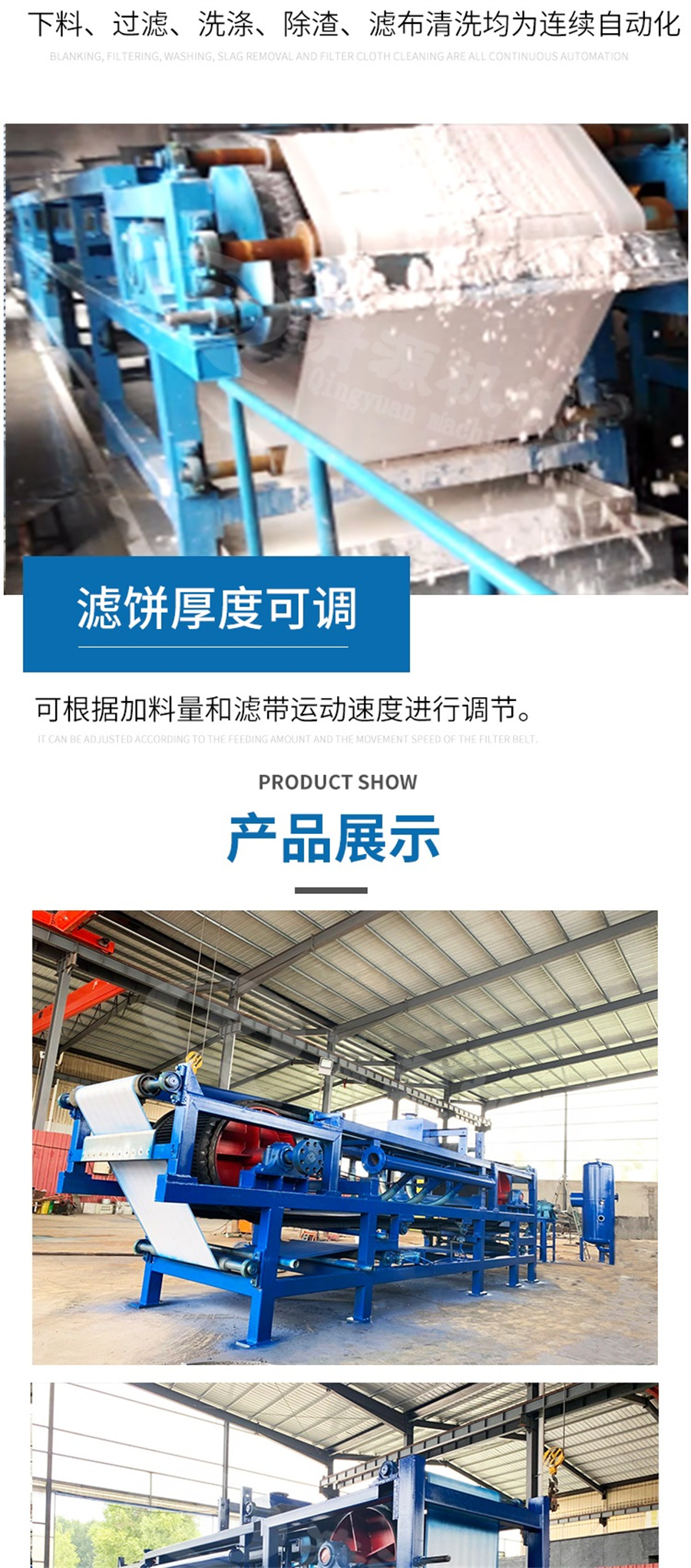 1: 自動(dòng)化程度高;下料. 過(guò)濾. 洗滌. 脫渣. 濾布清洗均為連續(xù)自動(dòng)化,提高生產(chǎn) 效率降低運(yùn)行成本,更好地減輕工人勞動(dòng)強(qiáng)度,改善工作環(huán)境。